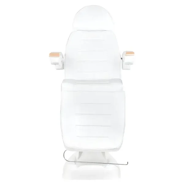 De eco-leder bekleding biedt niet alleen een luxe uitstraling, maar is ook gemakkelijk schoon te maken, waardoor de stoel ideaal is voor dagelijks gebruik in drukke salons. De hoofdsteun heeft een afsluitbare gezichtsuitsparing, wat extra comfort biedt tijdens massages of behandelingen waarbij de klant met het gezicht naar beneden ligt. Voor extra stijl en functionaliteit zijn de armleuningen afgewerkt met hout en gemakkelijk te verwijderen indien nodig.